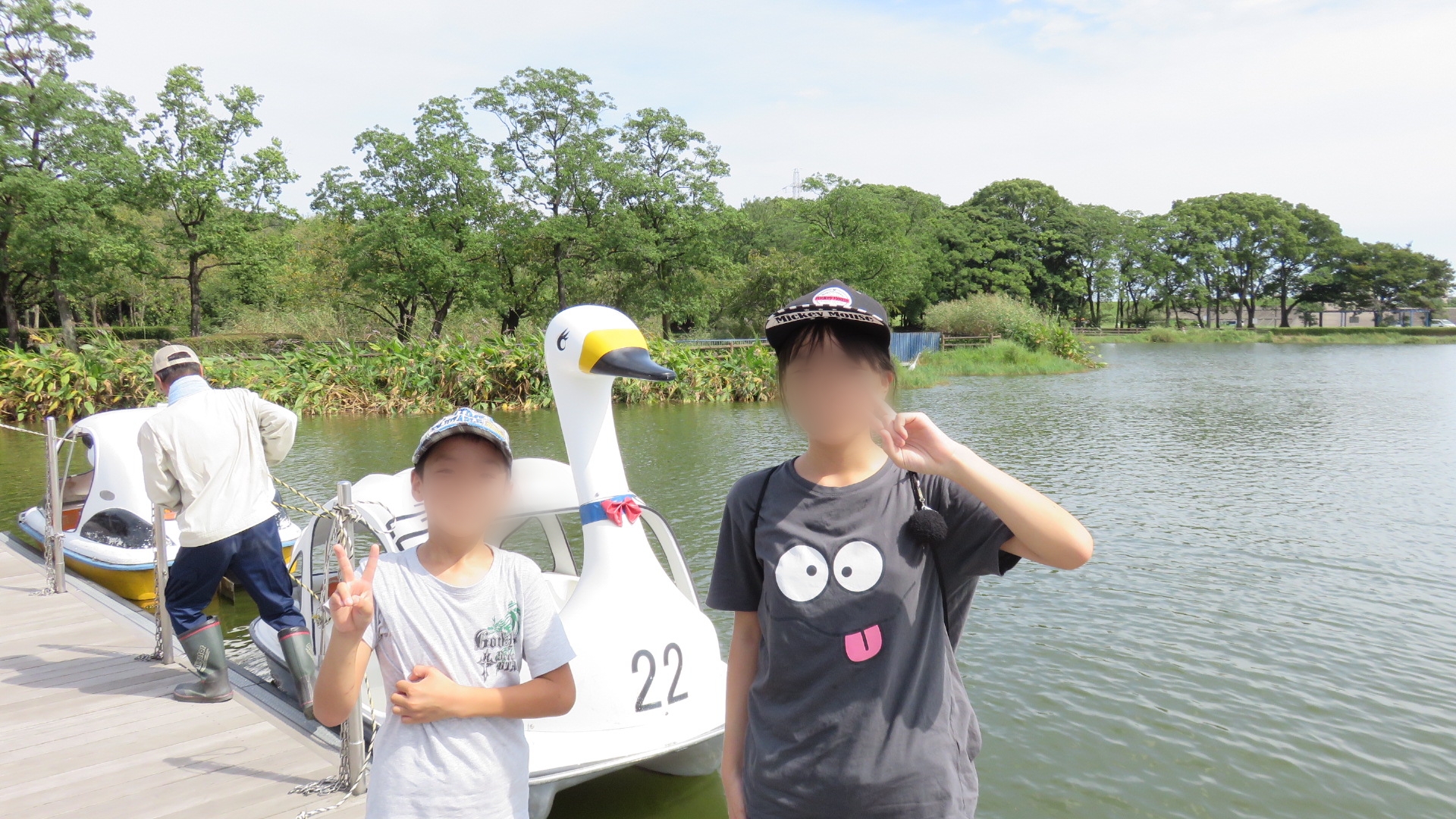 かき氷を食べた後は、庄内緑地公園でサイクリングをして、スワンボートに乗り、広場で野球やサッカー、バスケをして遊びました。