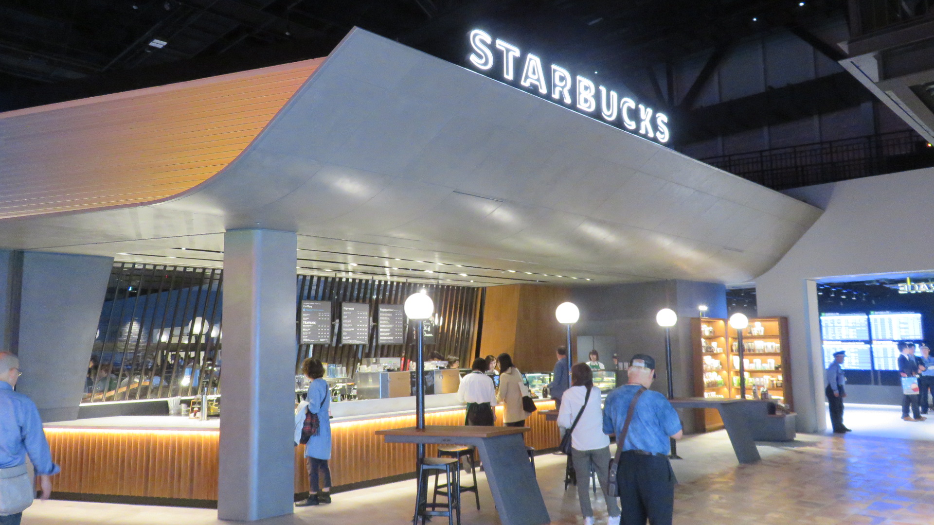 スターバックスのほか、他の飲食店も飛行機を眺められる席をしっかり確保しつつ、座り心地の良さそうなソファや椅子を配置していて、個人的には好きな空間。