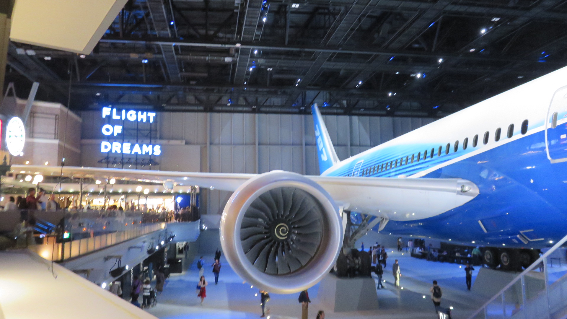 ひととおり飲食スペースをめくった後に展示スペースへ。展示スペースに入るとボーイングドリームライナーがより大きな迫力で迫ってくる。