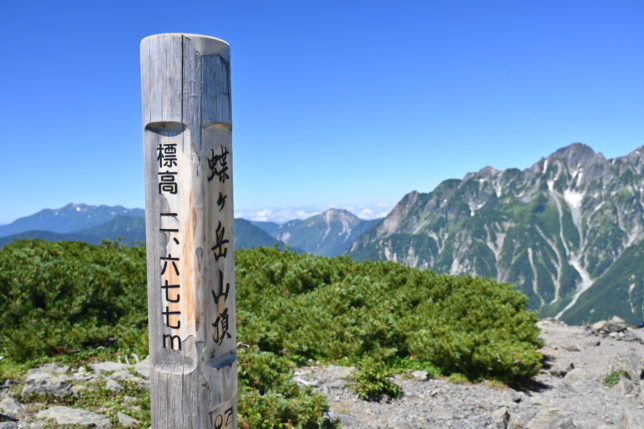 3時間ほどで、蝶ヶ岳の山頂へ到着。快晴の中、お気に入りの北アルプスの絶景が迎えてくれます。気分は、ただいまです(笑)。
