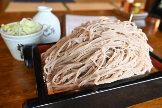 北アルプス牧場でソフトクリームを食べた後は、「くるまや」へ。ここの大盛り蕎麦をいただくと蝶ヶ岳に来たって実感します。