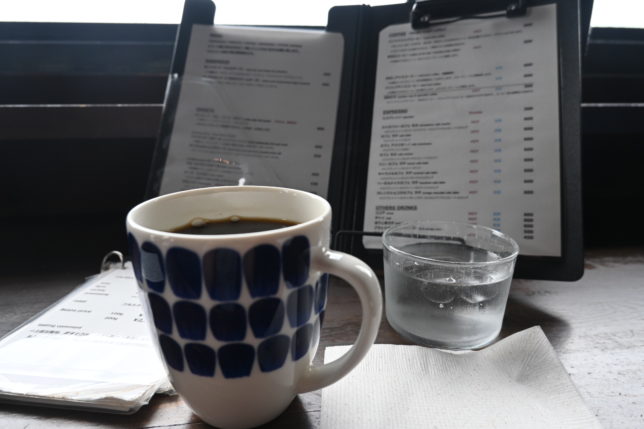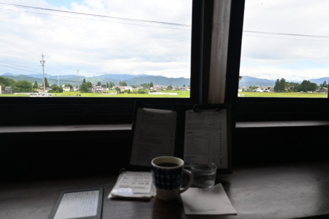 ゆったりとしたソファに身を預け、上品な酸味のあるフルシティローストのイルガチェフェをいただきながら、蝶ヶ岳登山の写真を見たり、読書したり、窓の奥に広がる田園風景を眺めたり…、程よい登山後の疲労感が少しずつ癒されるような素敵なひとときです。