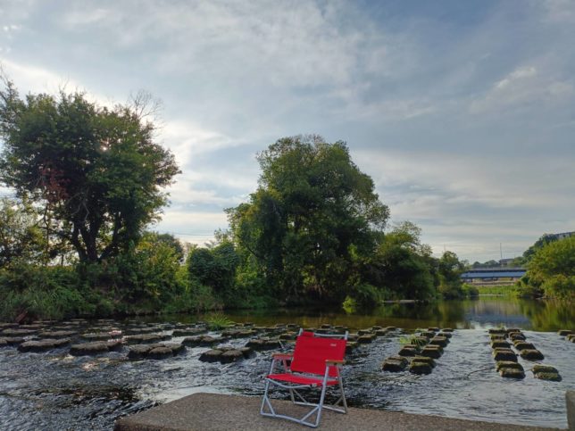 ① 気持ち良くロードバイクに乗り、② 池のほとりでチェアリング&読書、③ 川辺で足を水の中へ入れながら読書 と家近でアウトドアを満喫し、朝食前には帰宅。