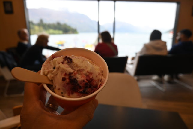 Patagoniaの2階は、大きな窓からwakatipu湖の眺めが良く、マスカルポーネ&フルーツのGELATOは濃厚でした。
