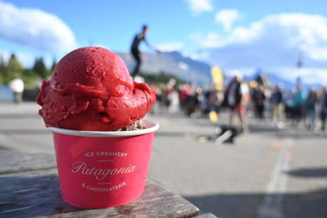 QueenTOWN Gardens Loopを散策した後、今回2度目のPatagoniaへ。賞受賞のフレーバーを選択し、大道芸を眺めながらいただきます。