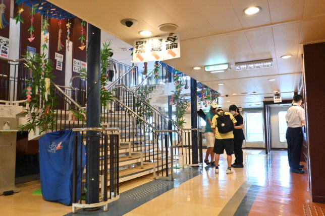 那覇から鹿児島まで航海する当船は、伊江島を見ながら本部に立ち寄り、水納島の脇を通って与論島へ向かいます。