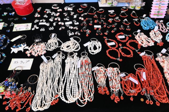 味咲の開店前、あまりに暑かったので、冷房中と張り紙のある味咲のとなり「なつこばぁちゃん」の店へ。希少な赤珊瑚のストラップを家族へのお土産に購入。2,000