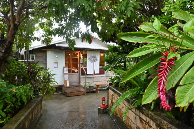 緑の奥にある店構え、入店前から期待が高まります。