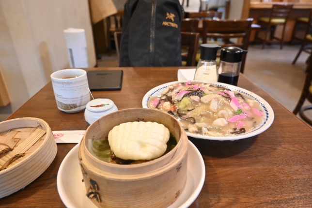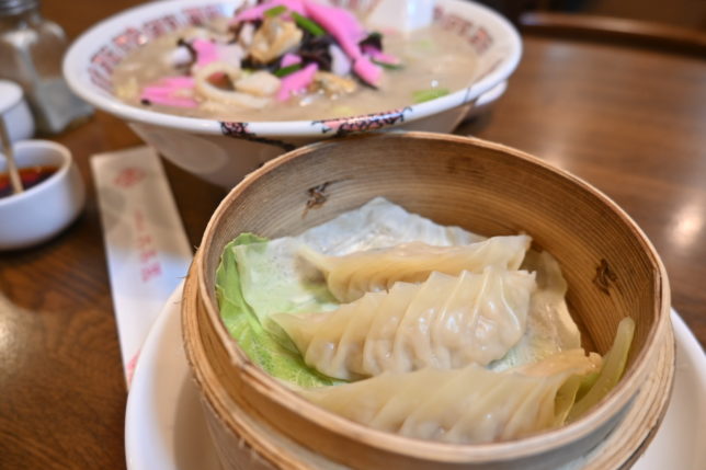 ホッとする素朴な味わいのちゃんぽん、旨み凝縮でプチ幸せの詰まった蒸し餃子。