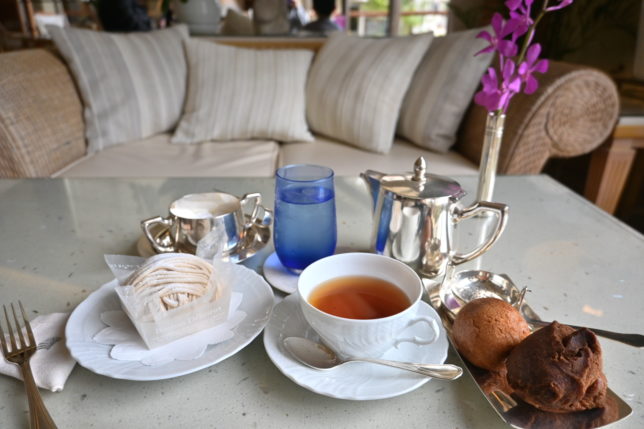 ピアノの生演奏が響く中、お気に入りのオーガニックティを片手に、楽園のカンヴァスを読み、景色を眺めながら、モンブランをいただくひとときに癒されます。